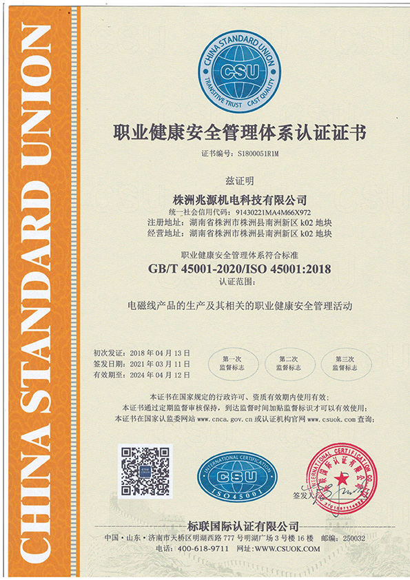 職業(yè)健康安全管理體系認(rèn)證證書(shū)