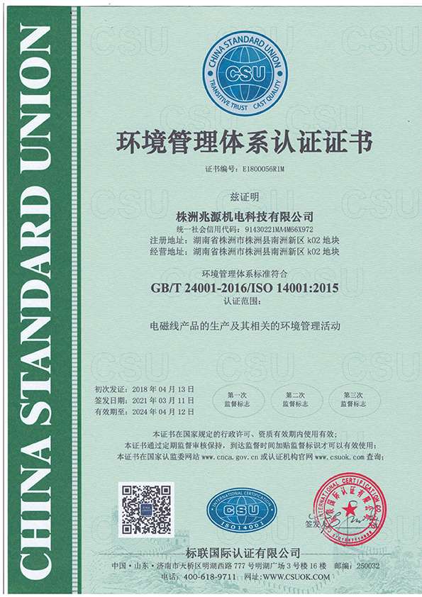 環(huán)境管理體系認(rèn)證證書(shū)
